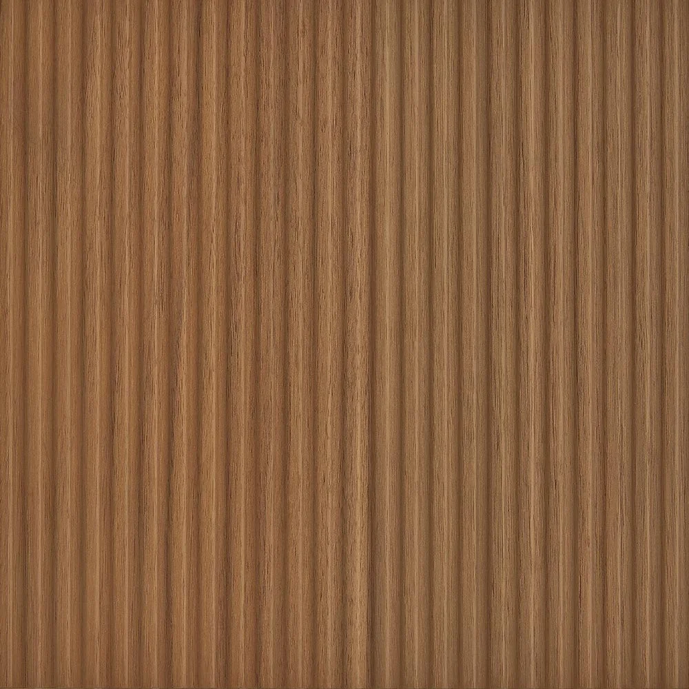 Wall panels in printed wood gold walnut and profiles in ardesia.